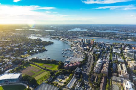Aerial Photography Anzac Bridge Golden Light - Airview Online