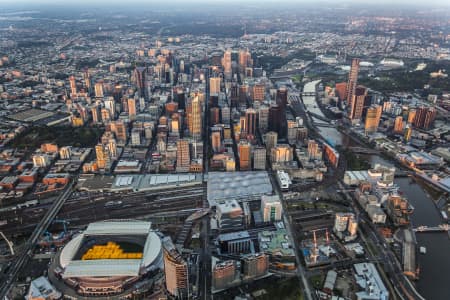 Dusk Aerial View Of Melbourne