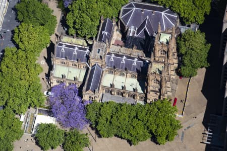Aerial Photography Sydney Town Hall Jacarandas - Airview Online